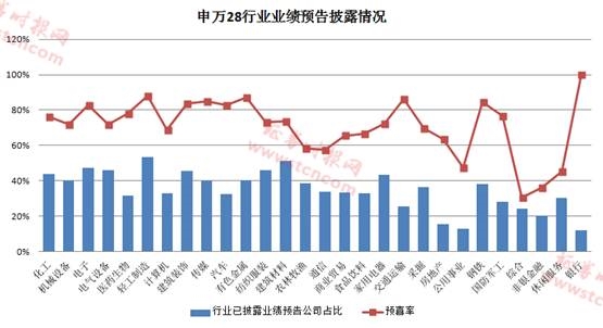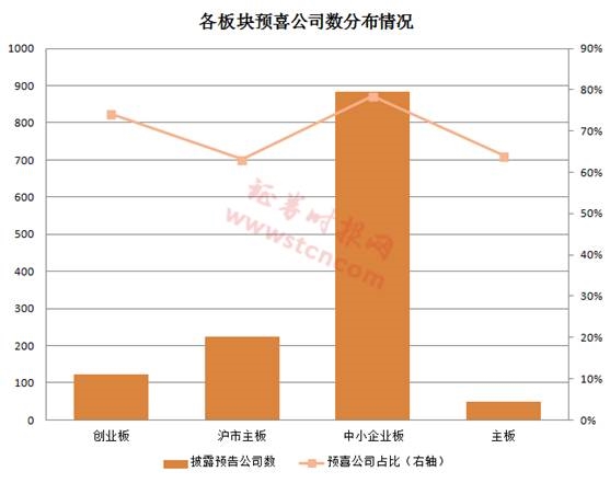 分板块来看,沪市主板225家、深市主板50家、中小板883家、创业板124家。其中中小板因受相关信披规定要求几乎已全部披露完毕。从预喜率(预喜公司数与预告公司总数的比例,下同)最高的为中小板,高达78%。