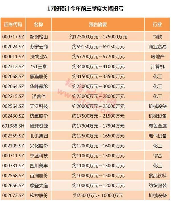 (原标题:上市公司三季度业绩预告全透视:17股预增超10倍、17股大幅扭亏、14股净利润预计大幅下滑) (责任编辑:DF302)